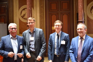 After a very convivial coffee break that allowed multiple exchanges between the participants present, the end of the morning was traditionally devoted to a high-level conference whose themes were “Lawyers and experts facing the new challenges of Justice: internationalisation, dematerialisation, E-obviousness and predictive Justice” (or how new technologies can improve the quality of justice in the EU).