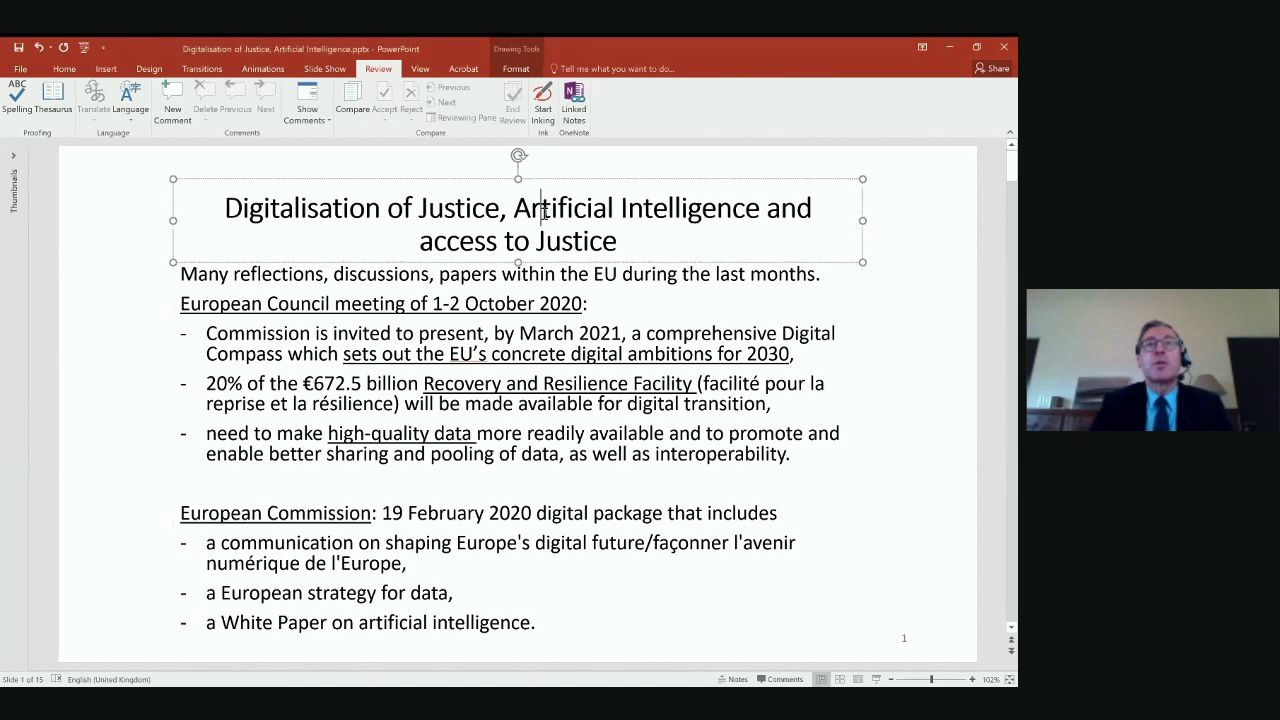 Alain Pilette reminded that for judicial experts, it will be important to have databases enabling courts to know whether an expert is recognized or officially registered as a judicial expert; the database(s) should also contain relevant information on their specialities and qualifications as well as on their location. Experts should also be able to dematerialize the exchanges, at least in civil and administrative proceedings, via a platform accessible also to the judge, the parties and their counsel, and the experts should be able to submit their opinion on this platform.