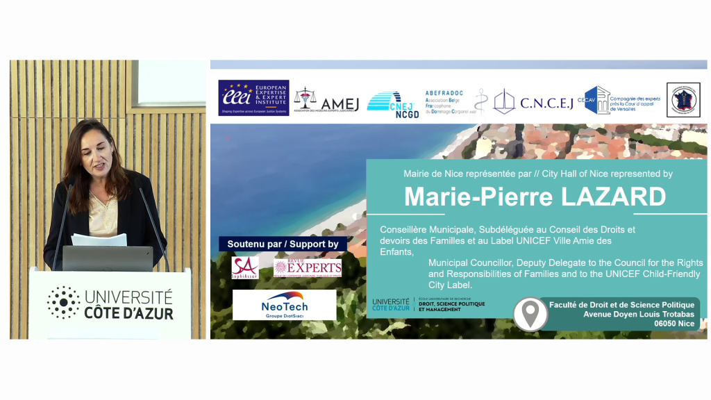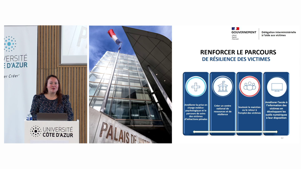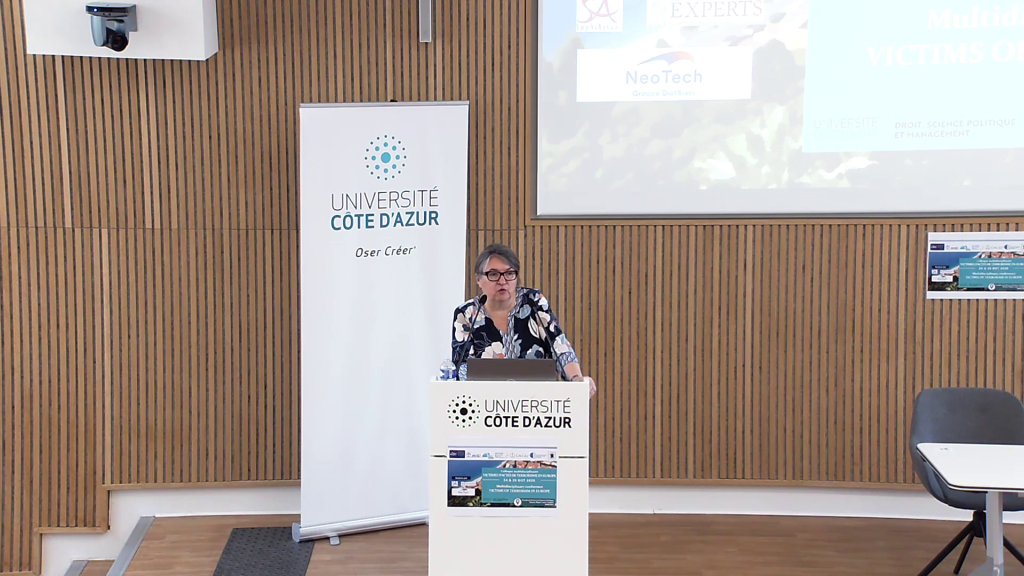 En introduction de cette matinée, Marie-Pierre Lazard a témoigné de l’implication de la ville de Nice dans l’aide aux victimes depuis l’attentat de 2016, en collaboration étroite avec les associations de victimes et les familles. Elle a particulièrement insisté sur la nécessaire empathie, le besoin d’écoute et de compréhension des victimes, dans l’après-coup, de la part des magistrats et experts. Elle a partagé avec nous son expérience du choc post-traumatique, particulièrement fort chez les enfants, quel que soit leur âge.