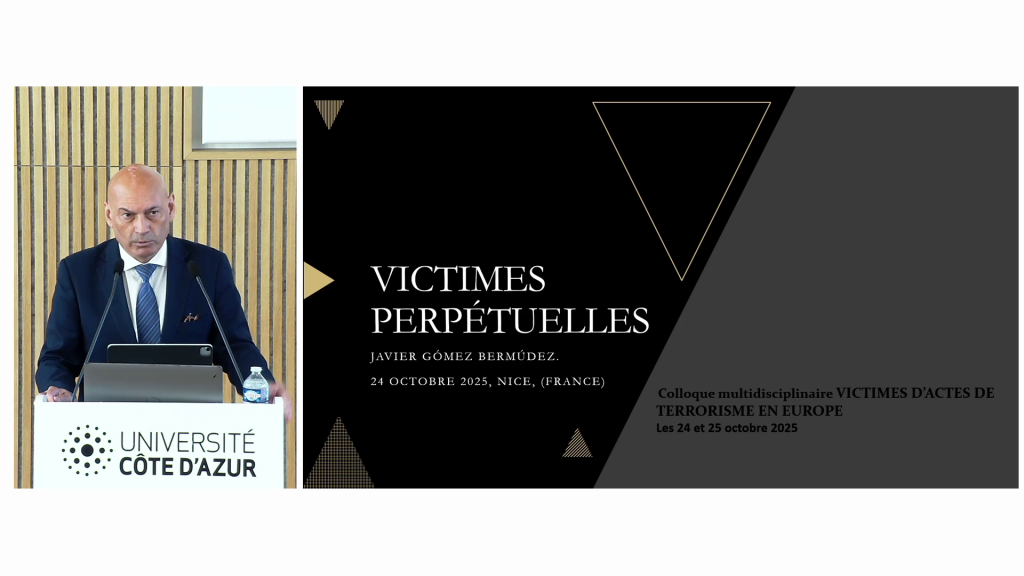 Javier Gomez Bermudez, magistrat (ES), expert du domaine du terrorisme, tant islamiste que de l’ETA, avocat au barreau de Madrid, nous apporta son témoignage fondé sur toute une série de points autour des victimes et notamment des victimes du 11 mars 2014, à Madrid, en Espagne.